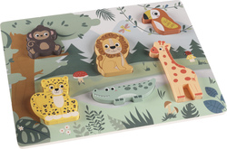 Drevené puzzle Džungľa sú skvelým spôsobom, ako deťom predstaviť divoké zvieratá a rastliny džungle, a to všetko v bezpečí vášho domova. S každým ďalším dielikom, ktorý vaše dieťa pridá, ožívajú pred jeho očami farby a tvary džungle, čím sa rozvíjajú jeho schopnosti rozpoznávania obrázkov a zlepšuje sa jemná motorika.