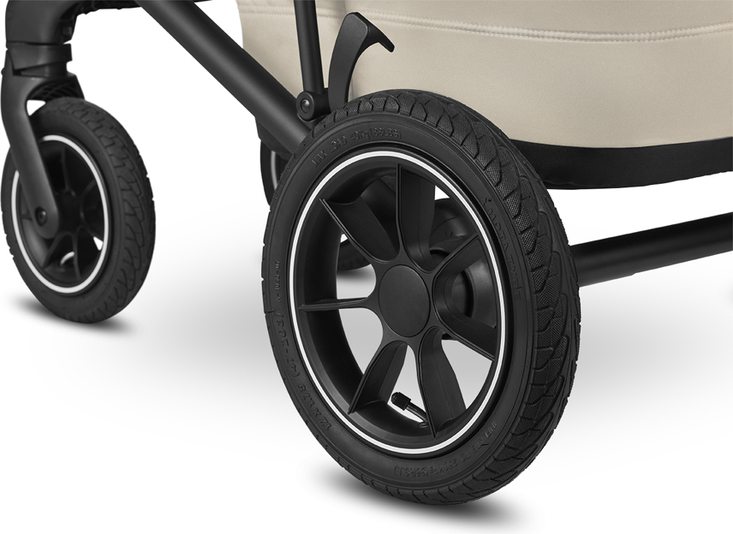 - vzduchom nahustené pneumatiky: ľahká navigácia v nerovnom teréne, poskytujúca maximálnu priľnavosť a pohodlie