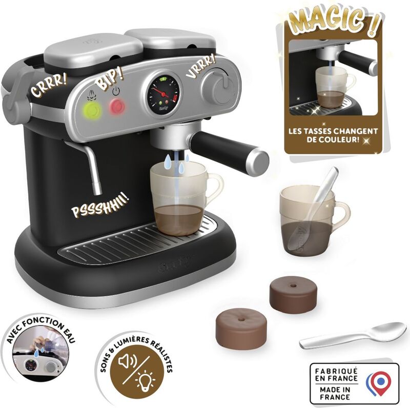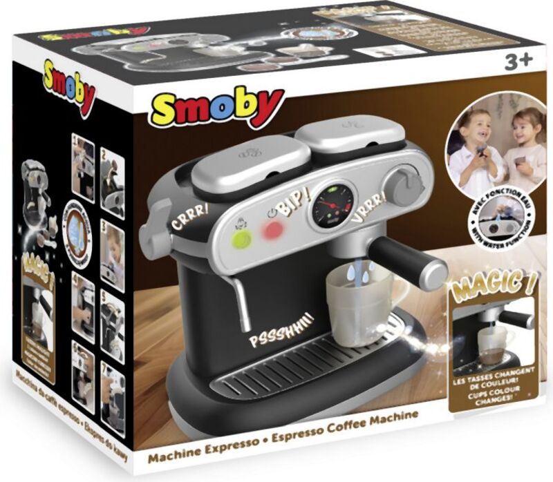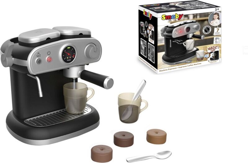 Dobre vybavený najmodernejší kávovar so zvukovými aj svetelnými efektmi, funguje ako skutočný kávovar.