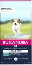 Eukanuba Grain Free* receptúra pre dospelých psov malých a stredných plemien s nízkym obsahom alergénov je starostlivo zostavená tak, aby krmivo neobsahovalo bežné alergény. Šetrné zloženie predstavuje alternatívu pre psov so zvláštnymi nutričnými požiadavkami, ktorá obsahuje nevyhnutné vitamíny a minerály pre zdravý život vášho psa.