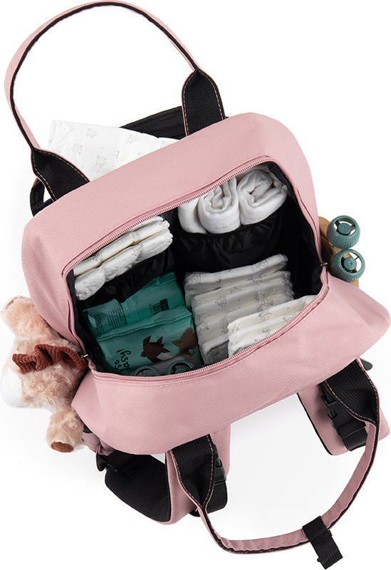 - Priestranný a prehľadne usporiadaný batoh, ktorý pojme všetky nevyhnutné veci pre bábätko, mamičku alebo otecka.