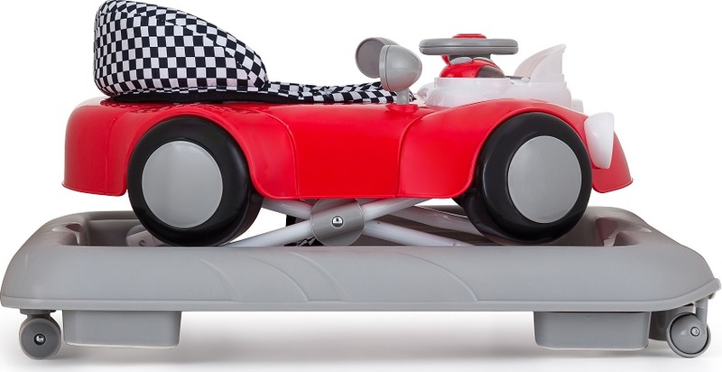 -  Hudobný panel: chodítko obsahuje hudobný panel s volantom, rôznymi zvukmi a svetlami, ktoré rozvíjajú sluchové, hmatové a motorické schopnosti dieťaťa. Panel možno tiež odobrať, čo umožňuje hrať sa s  ním samostatne.