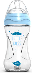 Sklenená fľaša Nuvita s ergonomickým tvarom a objemom 240 ml.