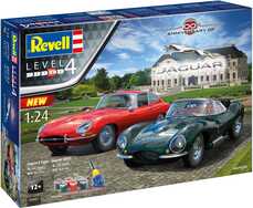 Modely aut ke slepení. Velikost: 1:24. Balení obsahuje: 287 dílků ke slepení, lepidlo, štětec a barvičky.Tato sběratelská edice, vytvořená k příležitosti 100. výročí značky Jaguar, obsahuje stavebnice dvou legendárních vozidel. Pouze 17 exemplářů závodního vozu D-Type se podařilo přestavět na silniční sportovní vůz XK-SS, než tovární dílny vyhořely. Za ještě slavnější je pak považován model E-Type, představený v roce 1961, s extrémně dlouhou kapotou a dechberoucími jízdními vlastnostmi. • Věrně ztvárněné karoserie • Mnohodílné motory • Různé chromované části • Obtisky s různými mezinárodními poznávacími značkami (D, A, CH, F, B, NL, GB, I, USA) • Balení obsahuje také základní barvy, lepidlo a štětec Obsah balení: • Plastový model (nesestavený) • Obrázkový, vícejazyčný návod k sestavení • Obtisky • Základní barvy (Revell Aqua Color) • Lepidlo (Revell Contacta Professional Mini) • Štětec Detaily modelu: