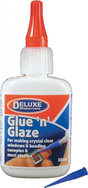 Glue and Glaze špeciálne netoxické lepidlo hustej konzistencie na lepenie a vytváranie zasklených plôch. Je vhodné napr. na lepenie a na vytváranie malých okien v modeloch lietadiel, lodí, pri stavbách a ďalších konštrukciách. Po vytvrdnutí je lepidlo číre. Prebytočné lepidlo je možné umyť vodou.