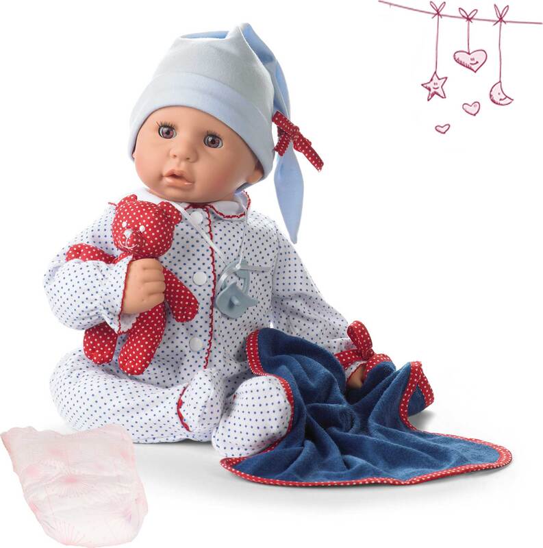 Götz bábätko Cookie v bodkovanim pyžamku s medvedíkom a dekou 48cm
