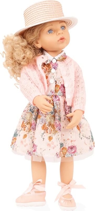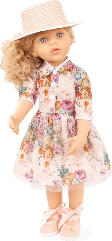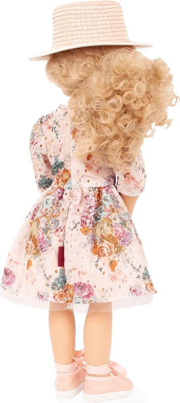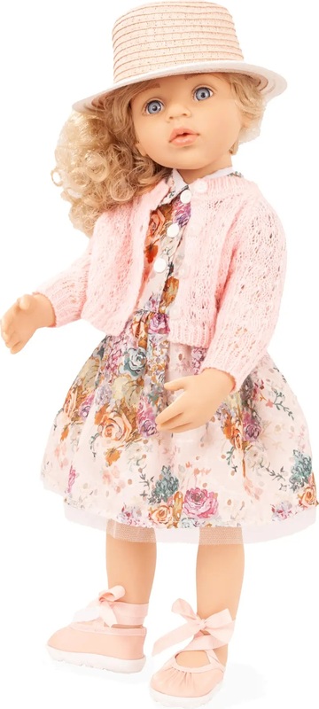 Greta očarí svojimi kamennosivými očami a dlhými blond kučerami. Jej elegantné kvetinové šaty s jemnou dierovanou výšivkou (eyelet embroidery), skombinované so sofistikovanou pletenou bundou a šik slameným klobúkom, jej dodávajú štýlový vzhľad. Ružové šnurovacie topánky dokonale dopĺňajú jej outfit.