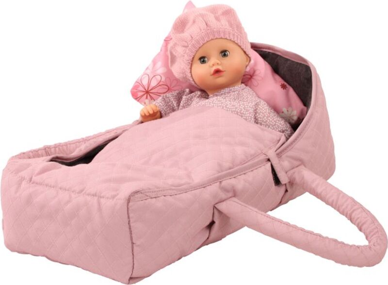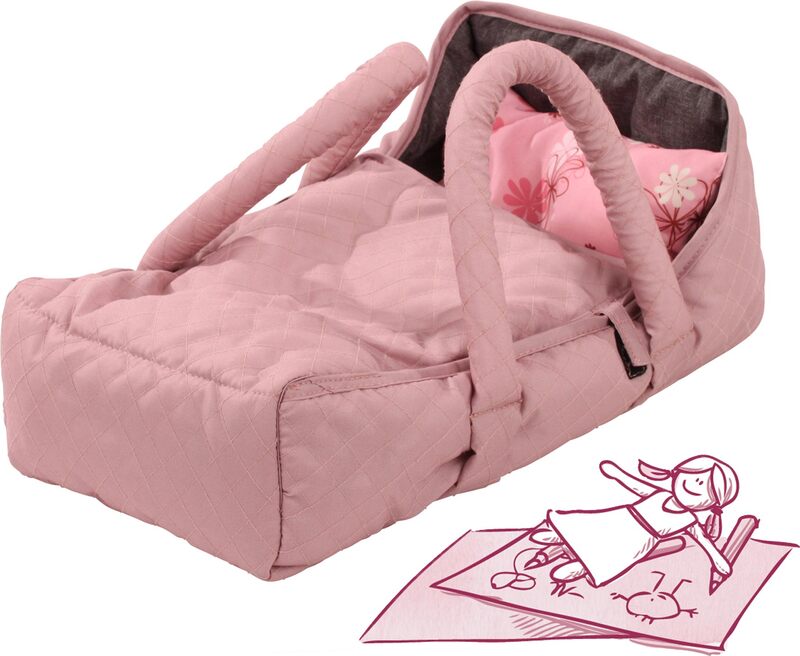 S týmto skvelým nosičom/postieľkou v šik ružovo-sivej farbe bude vaša bábika dobre ubytovaná počas cestovania alebo keď ste vonku, a bude môcť pokojne spať. Vaša bábika začne snívať hneď, ako si položí hlavu na tento pohodlný malý vankúšik. Poťah tejto postieľky sa dá uzavrieť suchým zipsom, takže integrovaná prikrývka nemôže vypadnúť z miesta. Prešívaný kockovaný vzor robí túto postieľku ešte šik. Materiál je ľahko udržiavateľný a robustný.