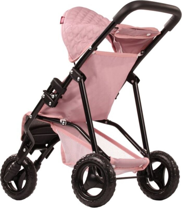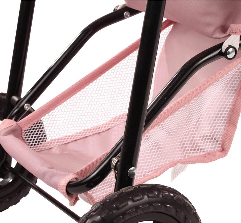 Tento štýlový kočík pre bábiky v šik ružovo-sivej farbe je náš najmenší model z ponuky športových kočíkov. Má slnečnú striešku a mäkkú rukoväť, vďaka čomu sa pohodlne tlačí. Nájdete tu aj sieťovaný nákupný košík, ktorý umožní mamičkám a oteckom bábik ľahko si uložiť všetky svoje veci. Jednoducho vložte svoju bábiku do kočíka a môžete vyraziť. Ľahko sa skladá a opäť rozkladá.