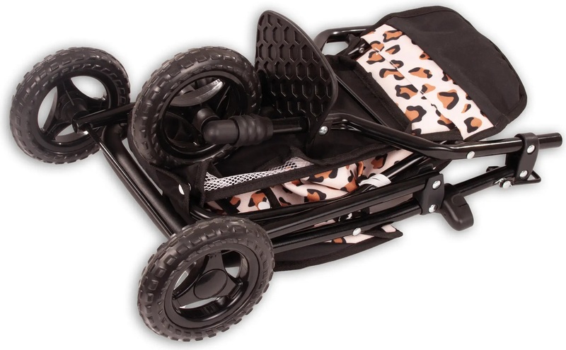 Tento štýlový kočík pre bábiky s tigrovaným vzorom je náš najmenší model z ponuky športových kočíkov. Má slnečnú striešku a mäkkú rukoväť, vďaka ktorej sa pohodlne tlačí. Nájdete tu aj sieťovaný nákupný košík, ktorý umožní rodičom bábik ľahko si uložiť všetky svoje veci. Jednoducho vložte svoju bábiku do kočíka a môžete vyraziť. Ľahko sa skladá a opäť rozkladá.