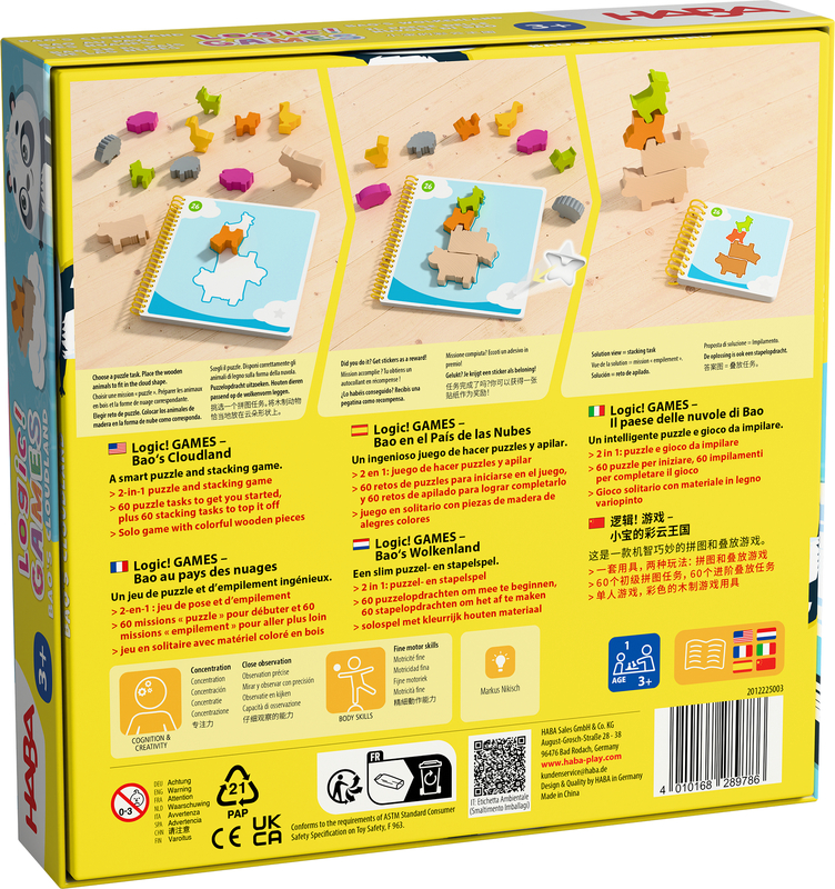 Deti sa spolu s Bao vydávajú na objavnú cestu cez oblaky. Rozpoznávajú rôzne tvary, vkladajú do nich správne zvieratá ako dieliky puzzle a ukladajú ich na seba. Potrebujú na to bystré oko a pevnú ruku! Náročnosť 60 hlavolamov a 60 úloh na skladanie sa postupne zvyšuje s každým kolom. Kto dokáže vyriešiť všetky?