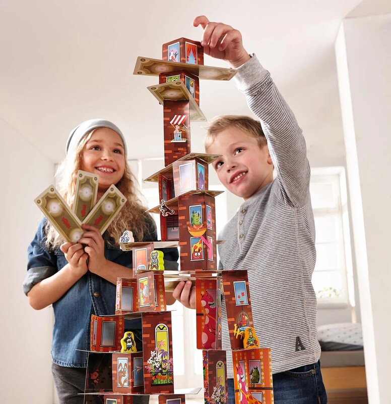 Postavte si veľkolepý 3D kartónový mrakodrap. Dve steny rôznych výšok vytvárajú vratké vzrušenie. Hráči môžu dokonca začať z viacerých základov a spojiť veže mostami.