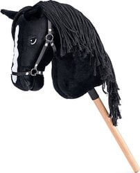 Hobby horse Cortez, čierny kôň na tyči, šnúrková hriva