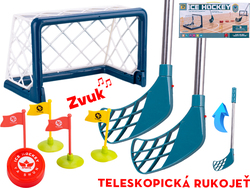 S týmto setom na batérie so svetelnými a zvukovými efektami sa Vaše deti zabavia na dlhý čas. Hokejky majú teleskopické tyče vďaka čomu môžete výšku prispôsobiť.