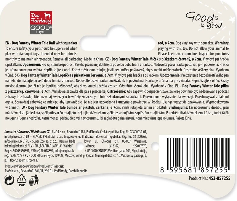 Hračka Dog Fantasy Winter Tale loptička pískacia, červená ? 7cm