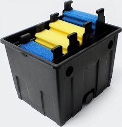 Účinná filtrácia ide skrz špeciálne filtračné materiály, ako je žltá a modrá huba s rôznymi rýchlosťami priechodu vody a japonská rohož, ktorá je vyrobená z drsných monofilov na báze polyesteru s veľkým povrchom, ktoré tiež umožňujú osídlenie baktériami. Filtračné médiá sú súčasťou balenia.
