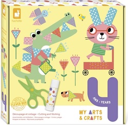 - Táto remeselná súprava obsahuje všetko, čo budú najmenší potrebovať na dokončenie 4 obrázkov rozrezaním vzorovaných papierových prvkov a ich prilepením na správne miesto.