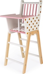 Drevená stolička pre bábiku Janod séria Candy ChicDrevená stolička na jedenie pre bábiky s okúzľujúcimi bodkovaným motívom splní sny každého dievčatka. Malé mamičky sa naučia procesu stravovania pri hraní sa s bábikami podľa vlastnej fantázie.
