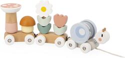 Táto drevená hračka na ťahanie alebo tlačenie vnáša do hier vášho dieťaťa čaro. Skladá sa z 3 vagónov s 2 kvetmi a 2 hubami na preskladanie (10 kusov).