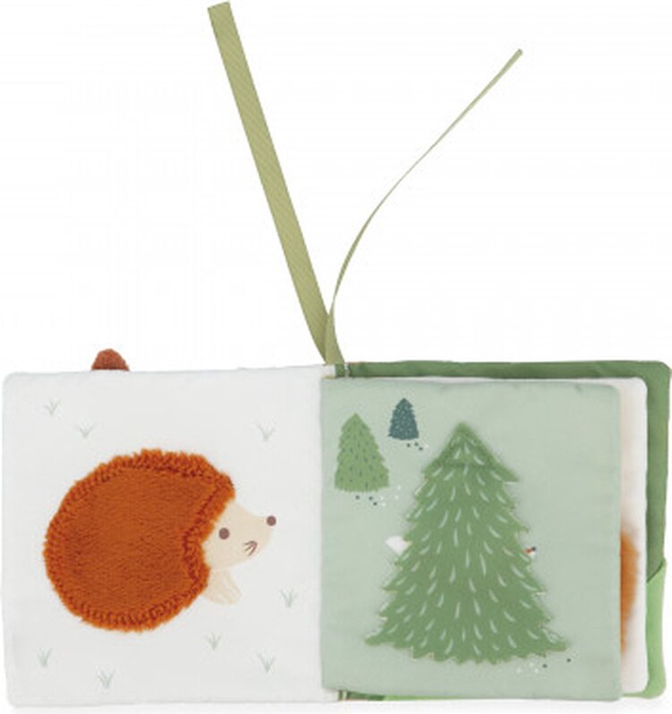 Ďalšou výhodou tejto vzdelávacej hračky sú pekné zelené stužky, ktoré vám umožňujú zavesiť látkovú knižku kamkoľvek a nechať si ju vaše dieťatko užiť samostatne.
