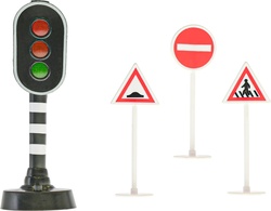Semafor so svetelnými efektmi bude skvelým doplnkom k tvojim autíčkam. Súčasťou balenia sú aj 3 dopravné značky.