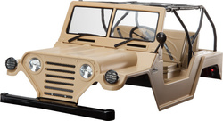 Obsahom balenia je hotová karoséria pre RC modely áut 1:10 Warrior (replika auta Ford Mutt M151) od Killerbody, vo vojenskom pieskovom prevedení. Karoséria má už z výroby nainštalované doplnky - viď obrázky.