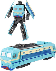 Senzačný kovový modrý mini robot, ktorého jednoducho prestavíš do podoby lokomotívy!