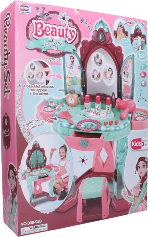 Obsahuje stolík so zrkadlom, stoličku a príslušenstvo.