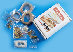 Po otvorení viečka krabice nájdete drevené diely modelu z preglejky, laminátový trup vrátane nástaveb, drobné súčasti uzavreté v sáčkoch, sadu výkresov a manuál.