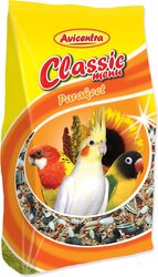 Kompletné krmivo pre africké veľké papagáje. Táto špeciálna zmes semien má pestré a vyvážené zloženie, špeciálne prispôsobené špecifickým výživovým požiadavkám veľkých afrických papagájov. Obsahuje vitamíny, aminokyseliny, minerálne látky a prídavok Florastimul pre optimálnu kondíciu a trávenie, semienka chia, ktoré dodávajú omega-3 mastné kyseliny a ustricové lastúry pre správne fungovanie svalnatého žalúdku vtákov a správny pomer vápnika a fosforu. Kŕmny návod: V závislosti od typu a veku vtáka sa denná dávka krmiva môže značne líšiť, podávajte podľa potreby papagájov. Zloženie: pruhované slnečnicové semienka, svetlica farbiarska, ovos, ryža, malá kukurica, pohánka, jačmeň, biele slnečnicové semienka, lúpané arašidy, dari, tekvicové semienka, píniové oriešky, rohovník, semenec, ustricové lastúry, biele proso, pšenica, pražená kukurica, šípky, červená paprika. Akostné znaky: proteíny 14%, tuky 15,5%, vláknina 14,5%, popoloviny 5%, vápnik 0,95%, fosfor 0,38%, metionín 3,25 mg/kg, lyzín 4,45 mg/kg, vitamín A 8000 m.j./kg, vitamín D3 1600 m.j./kg, vitamín E 20 mg/kg.