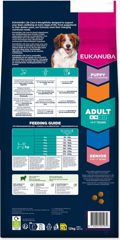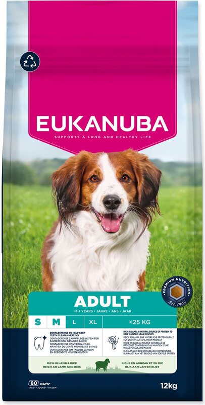 Superprémiové kompletné krmivo pre dospelé psy stredných plemien (10 – 25 kg). Hypoalergénna receptúra s jahňacím mäsom a ryžou. Podpora imunity - Probiotiká podporujú rast pozitívnych baktérií v čreve a tým celkovo stimulujú a podporujú prirodzenú imunitu organizmu. Pestrec podporuje zdravie pečene a zbavuje telo toxínov. Podpora zdravia srsti a pokožky - Lososový olej a rakytník sú výborným zdrojom mastných kyselín a prirodzených antioxidantov potrebných pre harmonizáciu, ochranu a perfektný vzhľad pokožky a srsti Podpora zdravia srsti a pokožky - Lososový olej a rakytník sú výborným zdrojom mastných kyselín a prirodzených antioxidantov nevyhnutných pre ochranu a perfektný vzhľad pokožky a srsti. Podpora telesnej kondície - Jahňacie obsahuje vyvážený pomer esenciálnych aminokyselín, ktoré prispievajú k udržaniu perfektnej kondície svalov a tkanív. Nízky obsah tuku podporuje skvelú kondíciu bez rizika priberania. Podpora telesnej kondície - Jahňacie obsahuje vyvážený pomer esenciálnych aminokyselín, ktoré prispievajú k udržaniu perfektnej kondície svalov a tkanív. Nízky obsah tuku podporuje skvelú kondíciu bez rizika priberania. Zloženie Dehydrované jahňacie (40%), ryža (35%), sušená jablčná dužina, kurací tuk, prírodná aróma, pivovarské kvasnice, lososový olej (2%), hrachová múka, glukosamín (260 mg/kg), frukto-oligosacharidy (200 mg /kg), chondroitín sulfát (200 mg/kg), mannán-oligosacharidy (150 mg/kg), juka schidigera (150 mg/kg), semená pestreca mariánskeho (90 mg/kg), ß-glukány (50 mg/kg) ), sušený srdcovník (50mg/kg), sušený rakytník rešetliakový (50 mg/kg), probiotiká Lactobacillus helveticus HA – 122 inaktivované (15x109 buniek/kg). Analytické zložky Hrubý proteín 26,0%, hrubý tuk 16,0%, vlhkosť 10,0%, hrubý popol 7,2%, hrubá vláknina 2,5%, vápnik 1,4%, fosfor 1,0%, sodík 0,4 %, omega-3 mastné kyseliny 0,5%, omega-6 mastné kyseliny 1,9%, EPA (20:5 n-3) 0,05%, DHA (22:6 n-3) 0,1%. Nutričné zloženie Vitamín A (3a672a) 20000 IU, vitamín D3 (3a671) 1500 IU, vitamín E (3a700) 500 mg, vitamín C (3a312) 300mg, taurín (3a370) 1500 mg, cholínchlór 3a910) 250 mg, vitamín B1 (3a821) 2,5 mg, vitamín B2 (3a825i) 9,6 mg, biotín (3a880) 3,5 mg, kyselina listová (3a316) 1,2 mg, vitamín B6 (3a831) 2 ,5 mg, D-pantoténán vápenatý (3a841) 25 mg, niacínamid (3a315) 32,5 mg, vitamín B12 0,1 mg, jód (3b201) 0,8 mg, organický zinok (3b606) 85 mg, organický 3b504) 40 mg, organická meď (3b406) 18 mg, organické železo (3b106) 75 mg, organický selén (3b810) 0,16 mg. Obsahuje antioxidanty schválené EÚ: tokoferolové extrakty z rastlinných olejov (1b306(i)), askorbyl palmitát (1b304) a výťažok z rozmarínu. Metabolizovateľná energia: 3 810 kcal/kg.