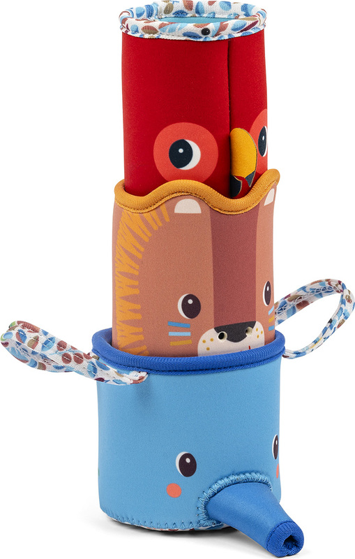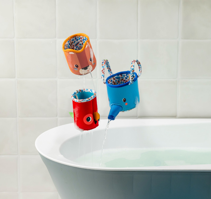 Tri veselé kelímky do vody v dizajne obľúbených postavičiek Lilliputiens - lev Jack, sloník a papagáj Gilles. Táto hračka do vane je vhodná pre bábätká od 6 mesiacov. Je ideálny pre stimuláciu koordinácie a motorických zručností, ale aj pre podporu objavovania u najmenších. Skúste do téglikov naliať vodu a sledujte, ako sa tváre detí rozžiaria, keď uvidia mini-vodné trysky. Po každom použití hračku opláchnite čistou vodou a osušte. Možno prať v práčke na 30 ° C na jemný cyklus.