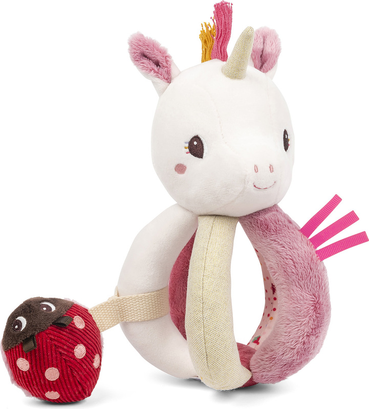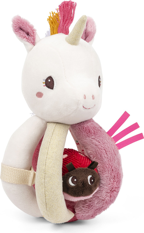 Originálna mäkkučká hrkálka, ktorá malé detské ručičky ľahko uchopí. Jednorožec Lena starostlivo stráži svoju kamarátku lienku. Hrkálka ponúka deťom mix rôznych textúr a aktivít na objavovanie. Zvuk zašité rolničky, šuštiaci papier, schovaná malá lienka. Možno prať v práčke na 30 ° C na jemný cyklus.