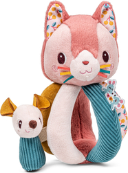 Originálna mäkkučká hrkálka, ktorá malé detské ručičky ľahko uchopí. Mačička Jeanne starostlivo stráži svoju kamarátku myšku. Hrkálka ponúka deťom mix rôznych textúr a aktivít na objavovanie. Zvuk zašité rolničky, šuštiaci papier, schovaná malá myška. Možno prať v práčke na 30 ° C na jemný cyklus.
