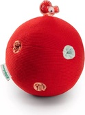 Jasne červená látková senzorická loptička so sliepočkou Paulette. Na povrchu má malé dierky s rôznou textúrou. Deti láka do otvorov strkať prstíky, čím stimulujú zmysly a jemnú motoriku.