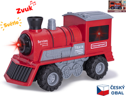 Lokomotíva červená 22,5cm 1:16 na zotrvačník na batérie so svetlom a zvukom