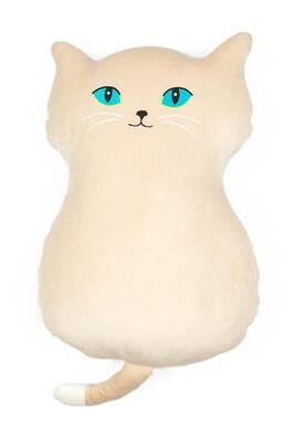 Veľké oči s uhrančivým pohľadom, to je naša plyšová mačka, ktorú môžete využiť ako hračku, vankúšik, alebo dekoráciu do miestnosti v byte alebo dome.