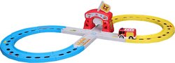 Závodná dráha s hasičským autíčkom BB Junior. Ľahko zostaviteľná nekonečná dráha s tunelom. Funguje na princípe zatrasenia autíčkom, ktoré sa potom pustí po závodnej dráhe a jazdí. Pri prejdení autíčka tunelom sa pohybuje vlajka umiestnená na tuneli.