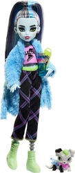 Jasné, že každá párty na spanie má rozmaznávanie a premenu... ale pridajte k tomu nejaké knihy kúziel a lak na pazúry a teraz je to naozaj strašidelná párty! Monster High predstavuje Creepover Party, kolekciu strašidelných postavičiek s tematickými doplnkami, ktoré inšpirujú k rozprávaniu príbehov a strašidelným módnym hrám. Super mäkká mikina s kapucňou bábiky Frankie Stone je elektrizujúca útulná! Nosia ju cez ružové grafické tričko a krátke kockované legíny. Táto príšerka vytvára vzrušujúci vzhľad s elegantným modrým pruhovaným chvostom, asymetrickými zelenými čižmami a čelenkou s detailom blesku. Váš pes Watzie prichádza so svojou vlastnou posteľou, ktorá je ideálna na uvelebenie sa, zatiaľ čo sa jeho bleskové krídla nabíjajú! Hovoríme o pohodlí pre zvieratá!