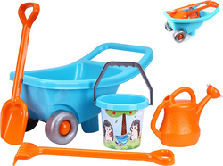 Konvička s dvoma držadlami je vhodná pre batoľatá. Lopatka a hrable budú užitočné, keď budete musieť zbierať suché listy. Vedierko s nálepkou, to je nepostrádateľný atribút pre každého záhradníka a ZÁBAVU na pieskovisku.