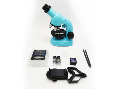 - mikroskop, držiak na mobilný telefón, sadu sklíčok, krabičku na sklíčka, pinzetu, misky a fľaštičky.