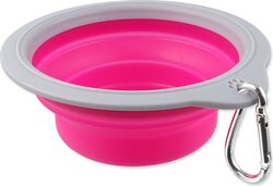 Skladacia miska vhodná na cesty. S karabinou na pripevnenie napr. k batohu.