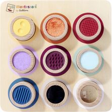 Naša Montessori hmatová doska má 9 senzorických valcov, v ktorých si dieťa môže ohmatať povrchy a textúry.
