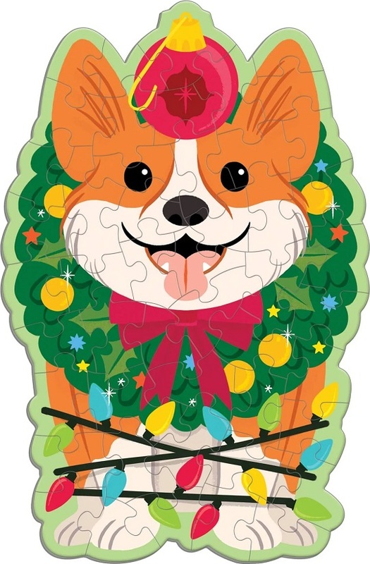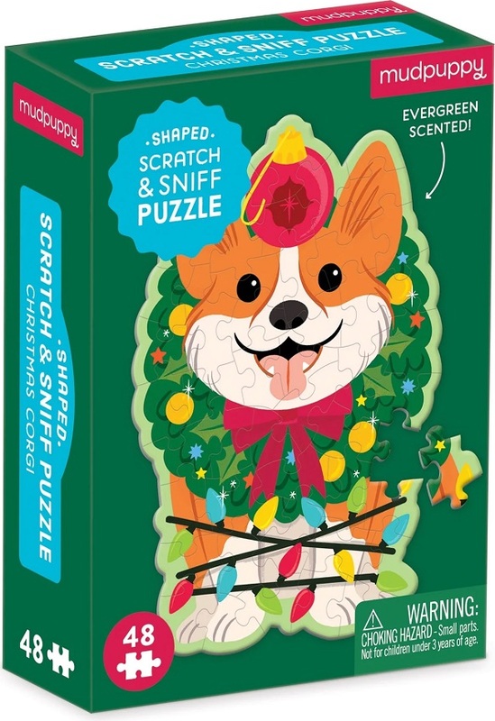 Mudpuppy Puzzle Vianončný pes Corgi s vôňou čečiny 48 dielikov