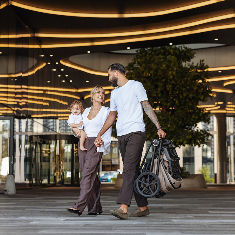 - Ľahký a funkčný kočík 2v1 – rám s kolesami váži len 7,6 kg