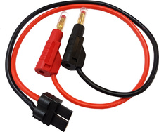 Nabíjací kábel s konektorom Traxxas prístroj (samec) a 4 mm banániky s bezpečnostným krytom, ktorý zamedzuje náhodnému skratu.