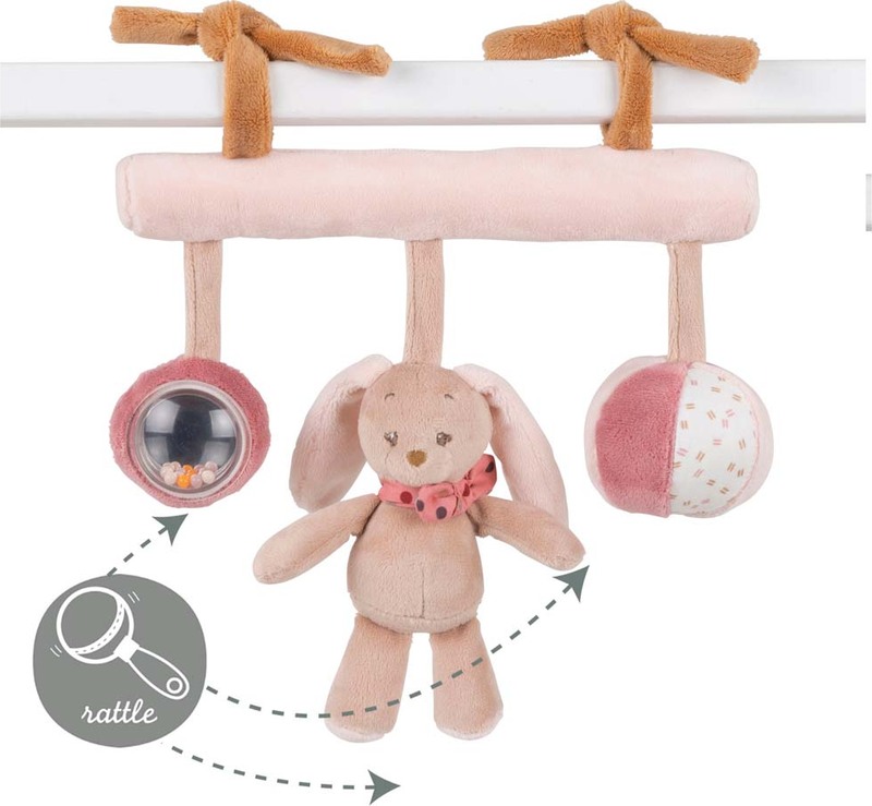 Vďaka veľmi jednoduchému pripojeniu je táto hračka vhodná na lehátko, autosedačku a iné.