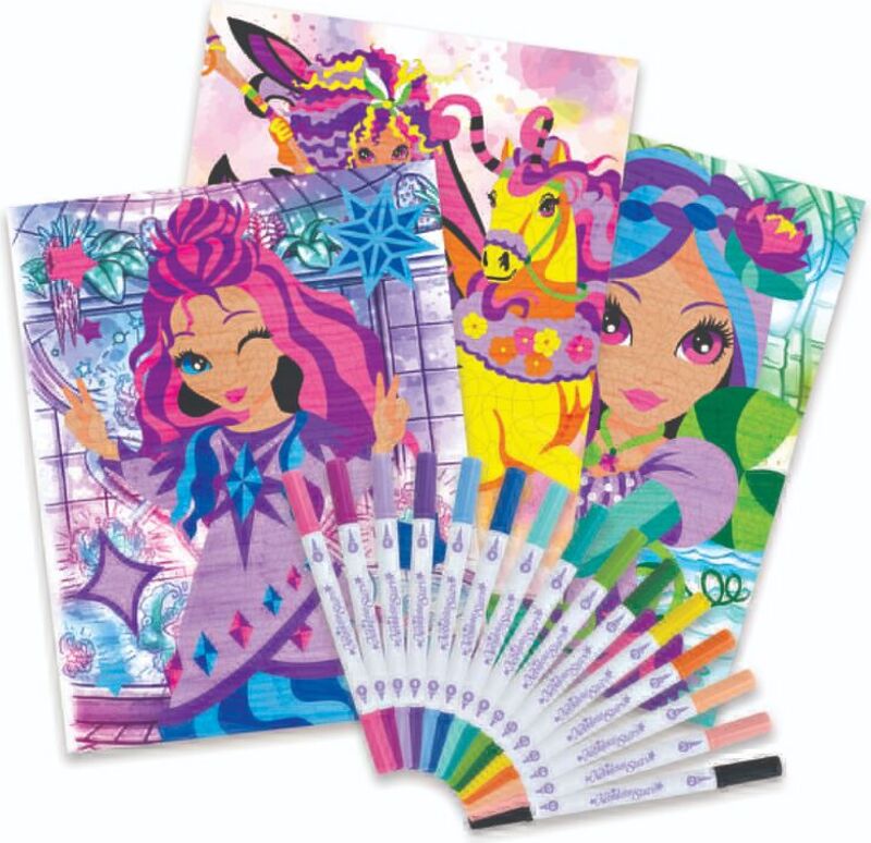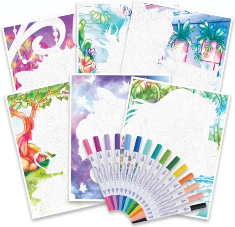 Táto kreatívna sada obsahuje 2 pekné obrázky, ktoré môžu deti vo veku 7 a viac vyzdobiť akvarelovými farbami.