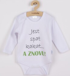 Originálne bavlnené dojčenské body s dlhým rukávom New Baby, s vtipným nápisom Keď nespím ja, tak ani vy! A obrázkom roztomilého chlapčeka.