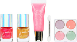 Obsah sady: 2 laky na nechty (2 × 7 ml), balzam na pery (4,2 g), lesk na pery (7 ml), 6 trblietavých očných tieňov, 10 samolepiacich dekoratívnych umelých nechtov, pilník na nechty, dvojitý aplikátor. Rozmery obalu: 20 × 21 × 3 cm.